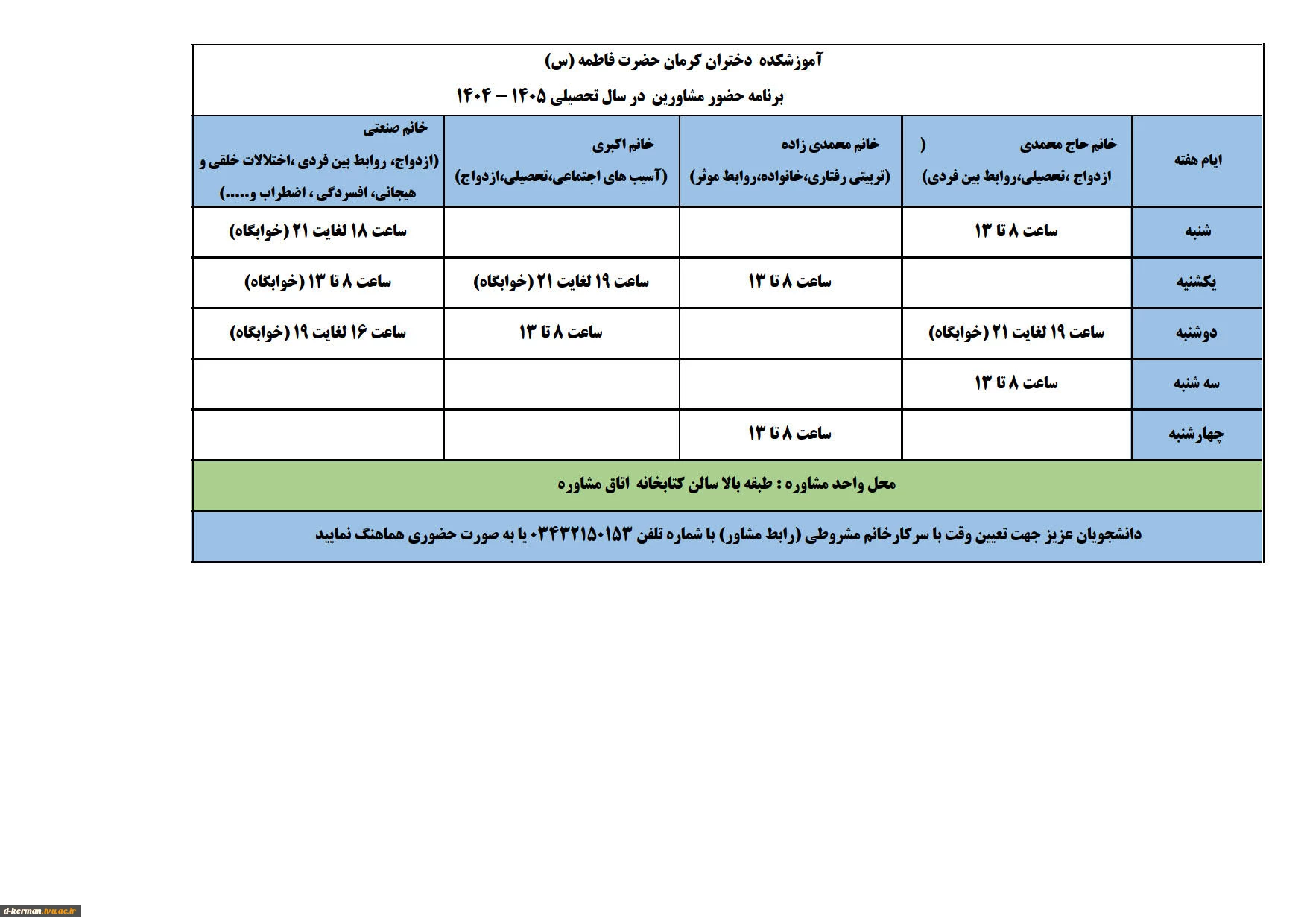 جدول چهار ترمه ی رشته مدیریت خانواده