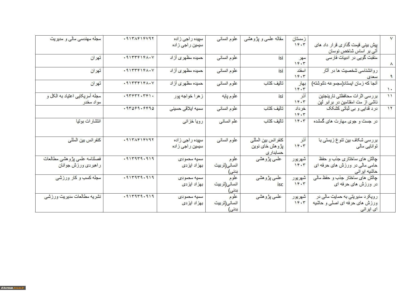 جدول چهار ترمه ی رشته مربیگری ورزش