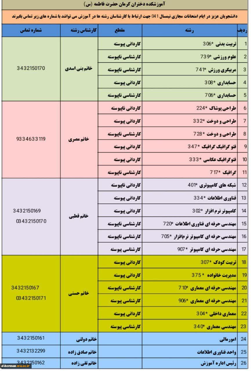 جدول چهار ترم رشته کاردانی انیمیشن 1400(غیر فعال)