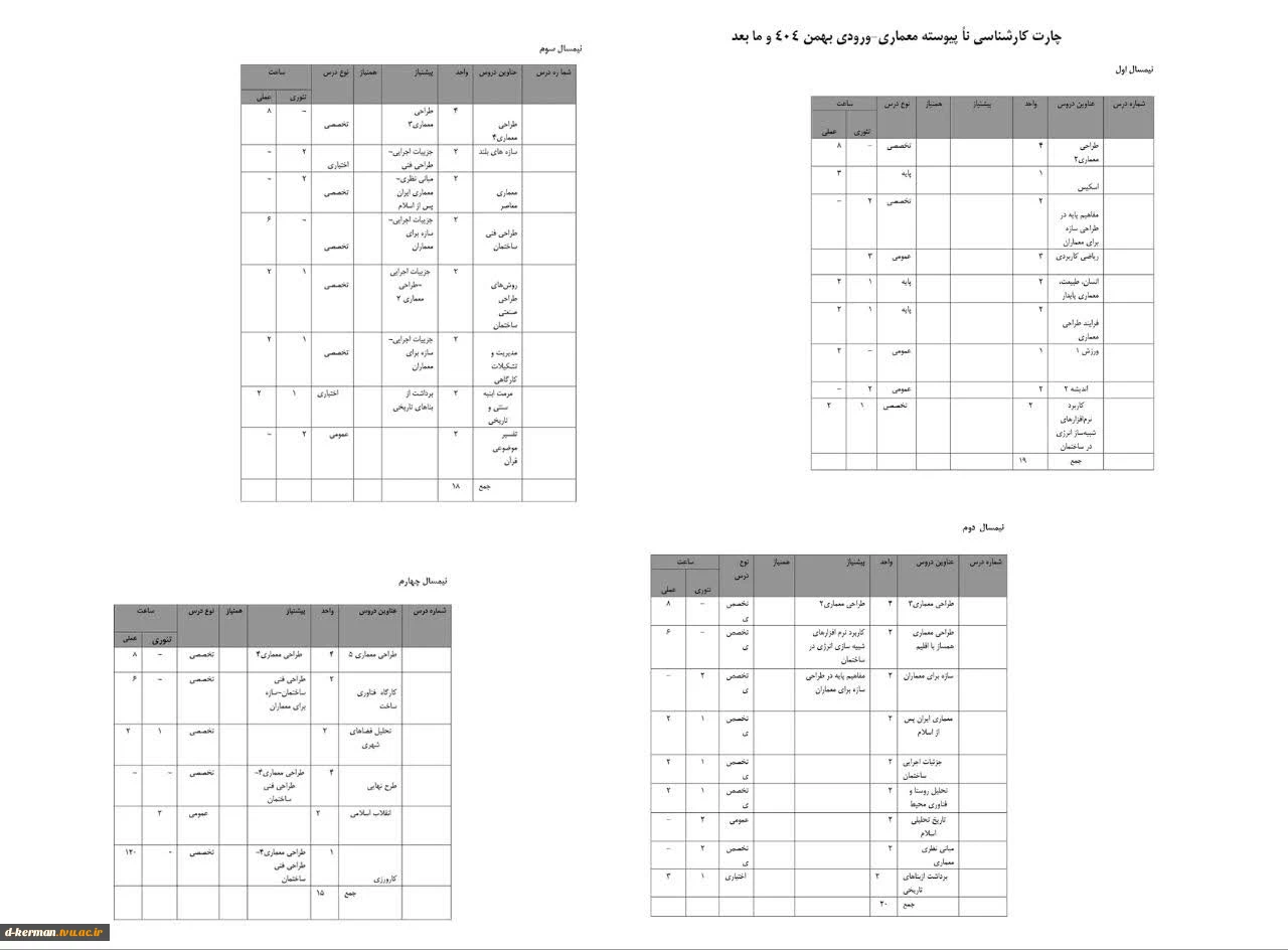 جدول چهار ترم رشته کارشناسی ناپیوسته طراحی و دوخت